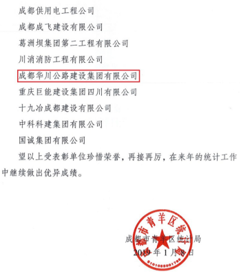由于上報時間及時、數(shù)據(jù)準(zhǔn)確、流程規(guī)范,集團(tuán)公司、華途公司、華霆公司在青羊區(qū)200余家建筑企業(yè)統(tǒng)計工作考核評比工作中脫穎而出,體現(xiàn)了集團(tuán)公司及子公司已規(guī)范按照國家大數(shù)據(jù)統(tǒng)計工作要求開展、落實(shí)工作,具有先進(jìn)性及代表性。