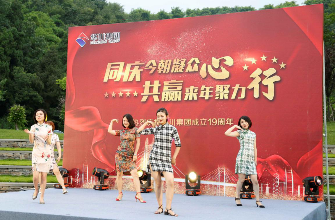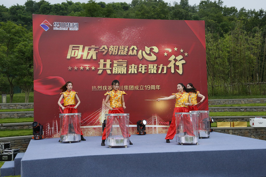 晚上,農(nóng)業(yè)總部基地?zé)艋痨陟?,集團19周年慶典晚會在這里舉行。作為十九周年與二十周年的連接節(jié)點,今晚過后將迎來集團成立二十周年華誕,黨委副書記發(fā)布《關(guān)于慶祝集團成立二十周年氛圍營造工作的通知》,副總裁熊文發(fā)布《休養(yǎng)度假專項福利方案》。發(fā)布會后,一曲《盛世華誕》鼓舞劃破夜空,激烈昂揚鼓聲將拉開了慶典的序幕?!督裉焓悄愕纳铡?,通過詞語改編,為集團送上了美好的生日祝福;群舞《別樣風(fēng)華》,通過集團女干部與文工團溫婉柔美,猶如一幅曼妙的畫卷;朗誦加合唱的節(jié)目《華川力量》,字字鏗鏘,展示出華川人血脈里流淌的豪邁情懷和磅礴的力量。伴隨著晚風(fēng)習(xí)習(xí),周年慶典進入尾聲,在《華川之歌》的歌聲中,大家自發(fā)走上舞臺,齊聲合唱,伴隨著熟悉的曲調(diào),大家連連歡呼,為本次慶典劃上了圓滿的句號。