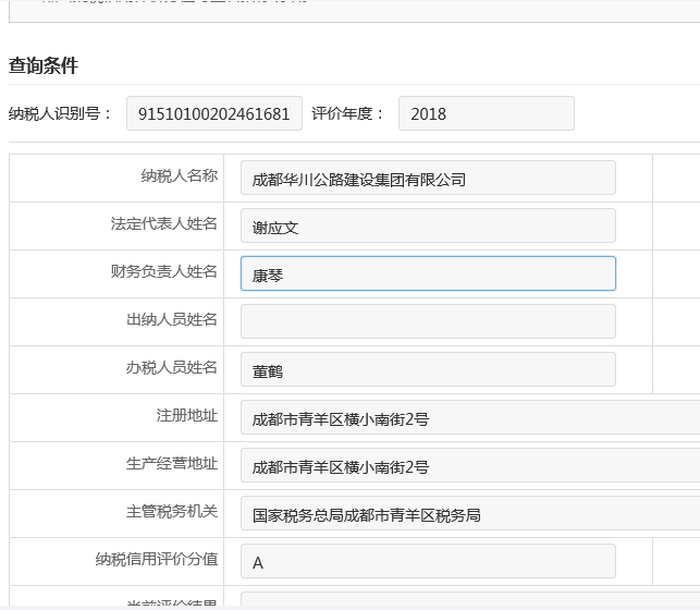 成都市稅務局對2018年度納稅信用評價結(jié)果已進行公示,集團再次榮獲納稅信用等級“A”級。