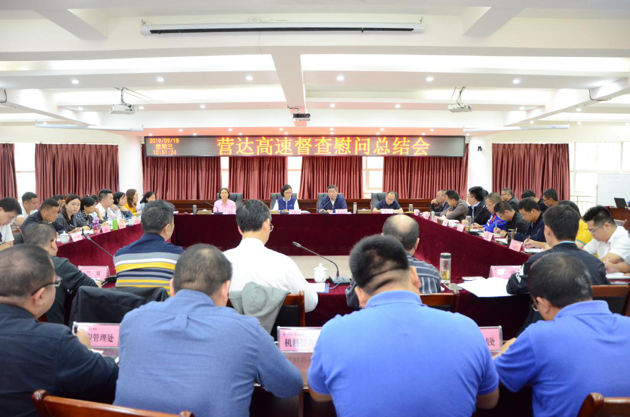9月18日,集團(tuán)常務(wù)副總裁駱曉紅等領(lǐng)導(dǎo)率集團(tuán)各職能部門負(fù)責(zé)人,在冒雨督導(dǎo)營(yíng)達(dá)高速LJ08合同段現(xiàn)場(chǎng)后,在營(yíng)達(dá)公司召開督導(dǎo)慰問(wèn)總結(jié)會(huì)。營(yíng)達(dá)公司、總包部、各分子公司負(fù)責(zé)人參會(huì)。