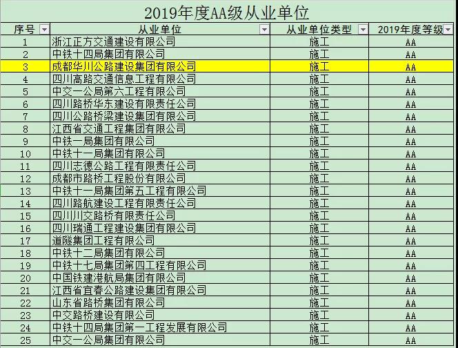 四川省交通廳于6月28日對2019年四川省公路施工企業(yè)信用評價結果進行公示,集團公司再次榮獲“AA”級