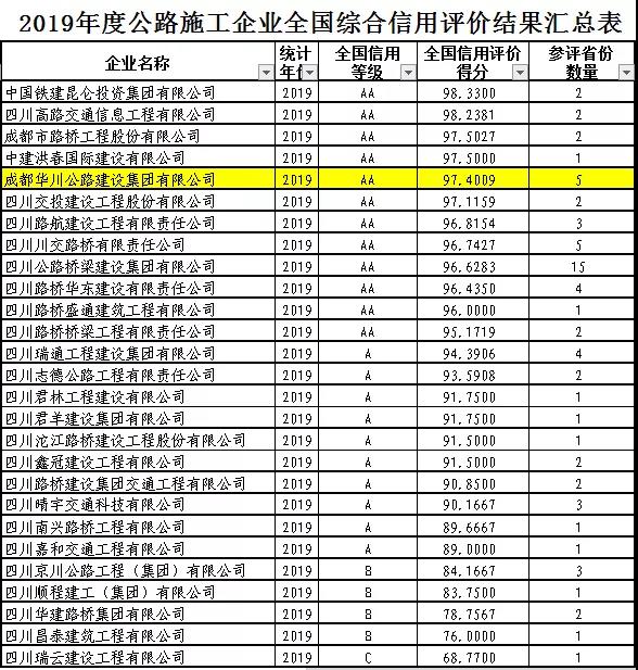 交通運(yùn)輸部于2020年7月23日對(duì)2019年度公路施工企業(yè)全國(guó)綜合信用評(píng)價(jià)結(jié)果進(jìn)行公示,集團(tuán)再次榮獲 “AA”級(jí)。