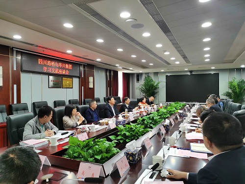 為推動(dòng)集團(tuán)科技創(chuàng)新發(fā)展,促進(jìn)技術(shù)革新,提升管理水平,逐步實(shí)現(xiàn)建設(shè)工程項(xiàng)目智能化、信息化、工業(yè)化,充分汲取行業(yè)標(biāo)桿企業(yè)管理技術(shù)經(jīng)驗(yàn)。10月18日,華川集團(tuán)董事會(huì)秘書、副總經(jīng)理熊文,總工程師周文強(qiáng)帶隊(duì)前往四川路橋開展交流學(xué)習(xí)活動(dòng)。四川路橋副總經(jīng)理劉德永、副總工程師鄧運(yùn)祥熱情地接待了華川集團(tuán)一行。