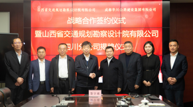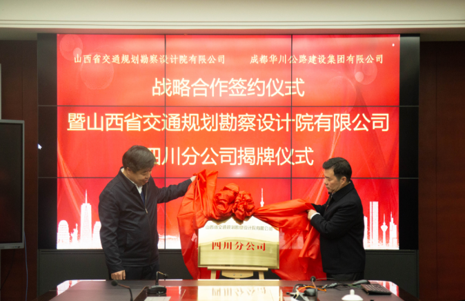 簽約儀式后,舉行山西省交通規(guī)劃勘察設計院有限公司四川分公司揭牌儀式,集團董事長、總經理、黨委書記謝應文受邀揭牌。