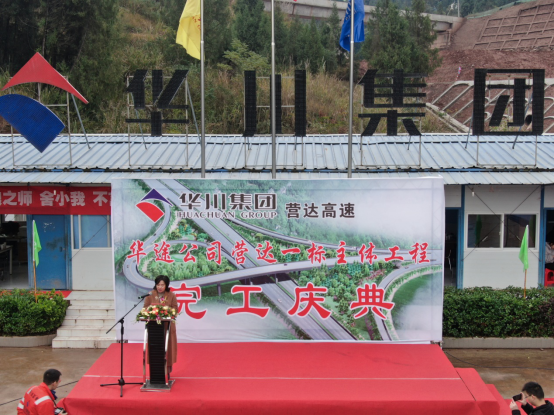 營山縣副縣長楊素梅在大會上致辭,她說:華川集團(tuán)為營達(dá)高速建設(shè)付出巨大努力,在將近3年的時間里,風(fēng)里來、雨里去,克服了征拆艱難、地材緊張、降雨量大等諸多困難,全體人員全力以赴,在較短的時間里完成了主體工程施工任務(wù)。營達(dá)高速公路的建設(shè)將對沿線人民經(jīng)濟(jì)建設(shè)注入強(qiáng)勁的動力。她對華川集團(tuán)頑強(qiáng)拚搏、信守承諾、造福社會的良好企業(yè)形象給予了高度評價和贊揚(yáng)。