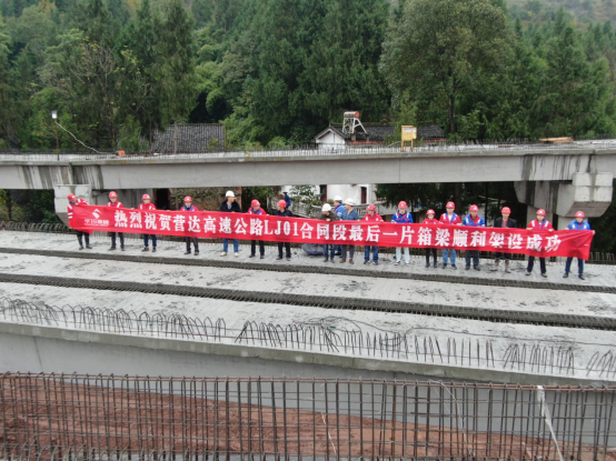 2019年4月8日完成新店樞紐互通施工區(qū)域的土地和房屋征拆協(xié)議簽訂;6月5日成功實現(xiàn)巴南廣高速封道施工,4座下穿現(xiàn)澆橋梁拉開施工大幕;8月6日,新店互通樞紐主線橋首片箱梁架設(shè)成功;11月7日,新店互通樞紐主線橋最后一片箱梁架設(shè)成功;11月14日,主線路基完成交驗;11月18日,最后一聯(lián)現(xiàn)澆箱梁順利完成澆筑;今日,順利完成新店樞紐互通最后一片梁板架設(shè)任務(wù)。一個個難關(guān)被攻克,一個個捷報傳來,全體參戰(zhàn)人員無不歡呼鼓舞。