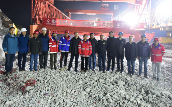 集團(tuán)黨委書記、董事長、總裁謝應(yīng)文,河北交投集團(tuán)紀(jì)檢書記李海衛(wèi),中電建冀交投資發(fā)展有限公司總經(jīng)理唐蘭軍,集團(tuán)副總裁熊文,集團(tuán)總裁助理、華北片區(qū)指揮長陳杰,集團(tuán)總裁助理、華北片區(qū)常務(wù)副指揮長牟世輝,邯鄲項目各參建子公司負(fù)責(zé)人等來到現(xiàn)場,共同見證了最后一榀鋼箱梁假設(shè)。謝總在現(xiàn)場談到:這次太行山攻堅戰(zhàn)充分展現(xiàn)了我們?nèi)A川集團(tuán)“頑強(qiáng)拼搏,永不言敗”的精神,全體施工管理人員眾志成城,排除萬難,向著一個目標(biāo)奮力拼搏。感謝全體參建人員的辛勤付出,感謝各級單位的全力支持。我們大家都是奮戰(zhàn)在太行山的戰(zhàn)友,這段時間在施工一線我看到了很多感人的事,認(rèn)識了很多樸實(shí)勤奮的筑路人,他們起早貪黑、加班加點(diǎn)全力為目標(biāo),我為我們光榮的路橋人感到自豪。