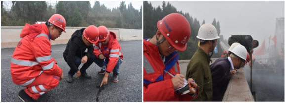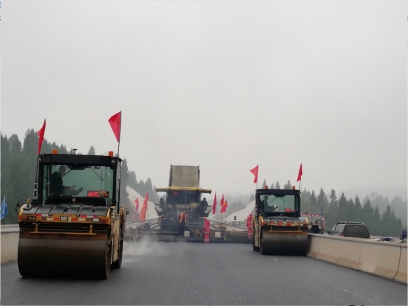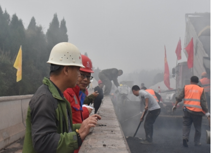 觀施工現場,華川旗幟高高飄揚,迎著微風,伴著小雨,1臺攤鋪機、5臺壓路機、15臺運輸車相互密切配合,攤鋪、碾壓機器發(fā)出的聲響,奏出了一曲鏗鏘有力的“施工進行曲”?,F場負責人及時查看攤鋪厚度,確保厚度在合理范圍內,技術員實時查看瀝青攤鋪溫度,項目部領導駐現場指導,經過各級人員的共同努力,精心組織、標準化,文明化施工,攜手完成了本次試驗段鋪筑工作。