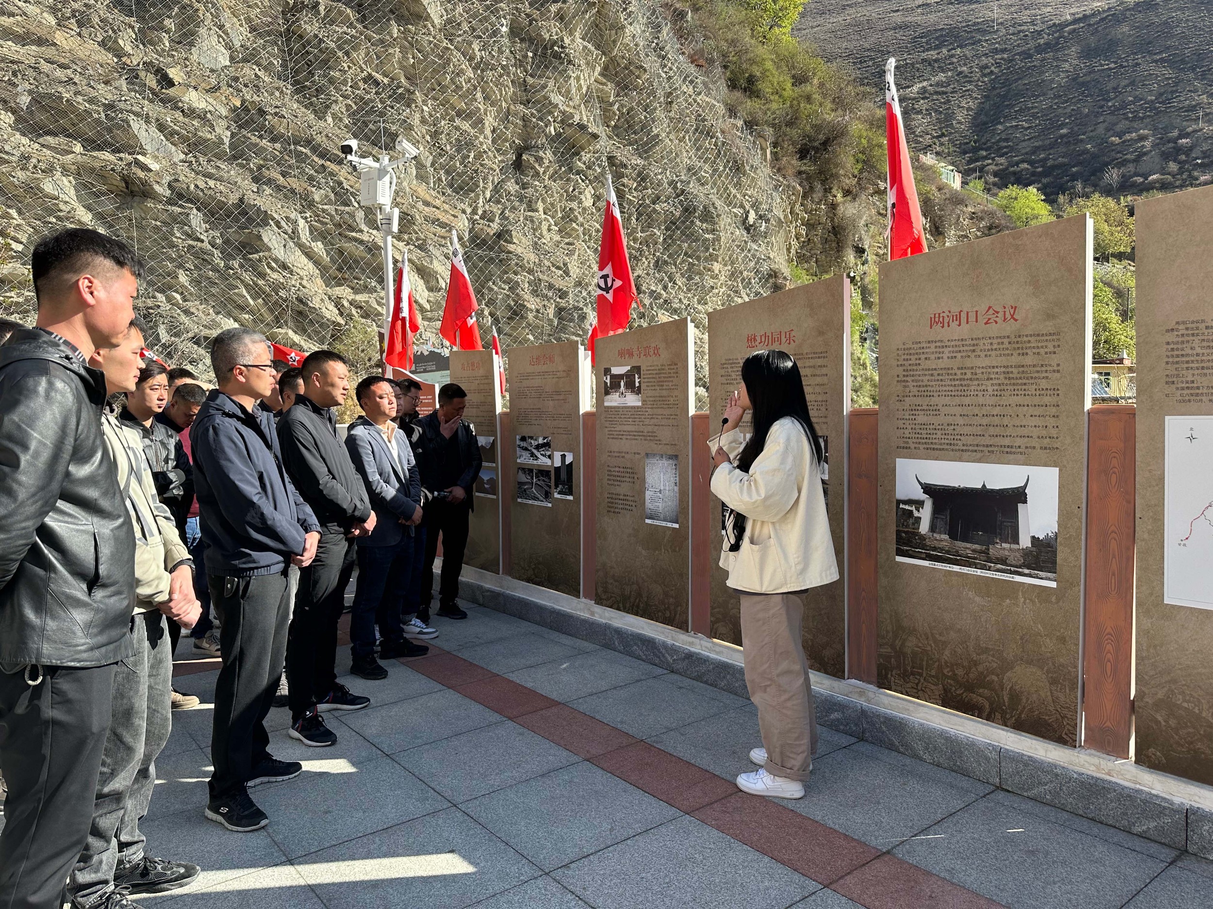 達維鎮(zhèn)相關(guān)負責人帶領(lǐng)支部青年員工一同參觀達維會師紀念碑并作講解。紀念碑位于四川省小金縣城東部夾金山北麓,1935年6月12日,中央紅軍先遣部隊艱難翻越夾金山后,與紅四方面軍先頭部隊在此會師。先頭部隊會師后數(shù)日,毛澤東率領(lǐng)中央紅軍主力部隊抵進達維,并于當晚在此舉行了會師聯(lián)歡會。達維會師在長征史上具有非常重要的意義,兩大主力勝利會師,壯大了革命力量,長征由此掀開了新的一頁。